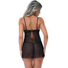Babydoll Malizia in pizzo con perizoma. Babydoll Malizia in pizzo con perizoma per la donna che sa provocare. Babydoll sensuale in rete trasparente, coppe in pizzo con motivo a cuore e spalline per accentuare le tue curve. Ferretto con chiusura e spalline regolabili, cordino abbinato incluso.