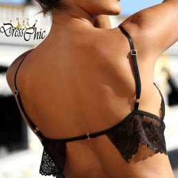 Bralette in pizzo nero con due nastrini sulle coppe.