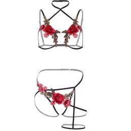 Reggiseno a rose e slip senza cavallo- Lasciatevi sedurre da questo accattivante set ! Questo sexy set di reggiseno presenta splendidi dettagli floreali, spalline regolabili e perizoma coordinato.