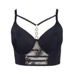 Reggiseno longline con coppe con ferretto leggermente foderato. Le sofisticate fasce per le coppe e le spalline sono regolabili per una perfetta vestibilità. Nero, con dettagli in oro rosa. Materiale opaco ed elastico