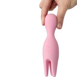 Setoso e morbido vibratore a posa morbida con dita vibranti e circolanti del piacere per la stimolazione intensiva del clitoride. La testa sferica del vibratore può essere utilizzata anche per un massaggio sensuale o per coccolare il punto G interno. La Ninfa è piacevolmente flessibile e persino impermeabile per i piaceri erotici del bagno. 3 velocità di rotazione nelle dita del desiderio e 5 modalità di vibrazione in 5 velocità ciascuna nella testa del vibratore forniscono un piacere variegato. Comodamente controllabile con la semplice pressione di un pulsante e ricaricabile con il cavo USB in dotazione. Compreso il sacchetto di stoccaggio.